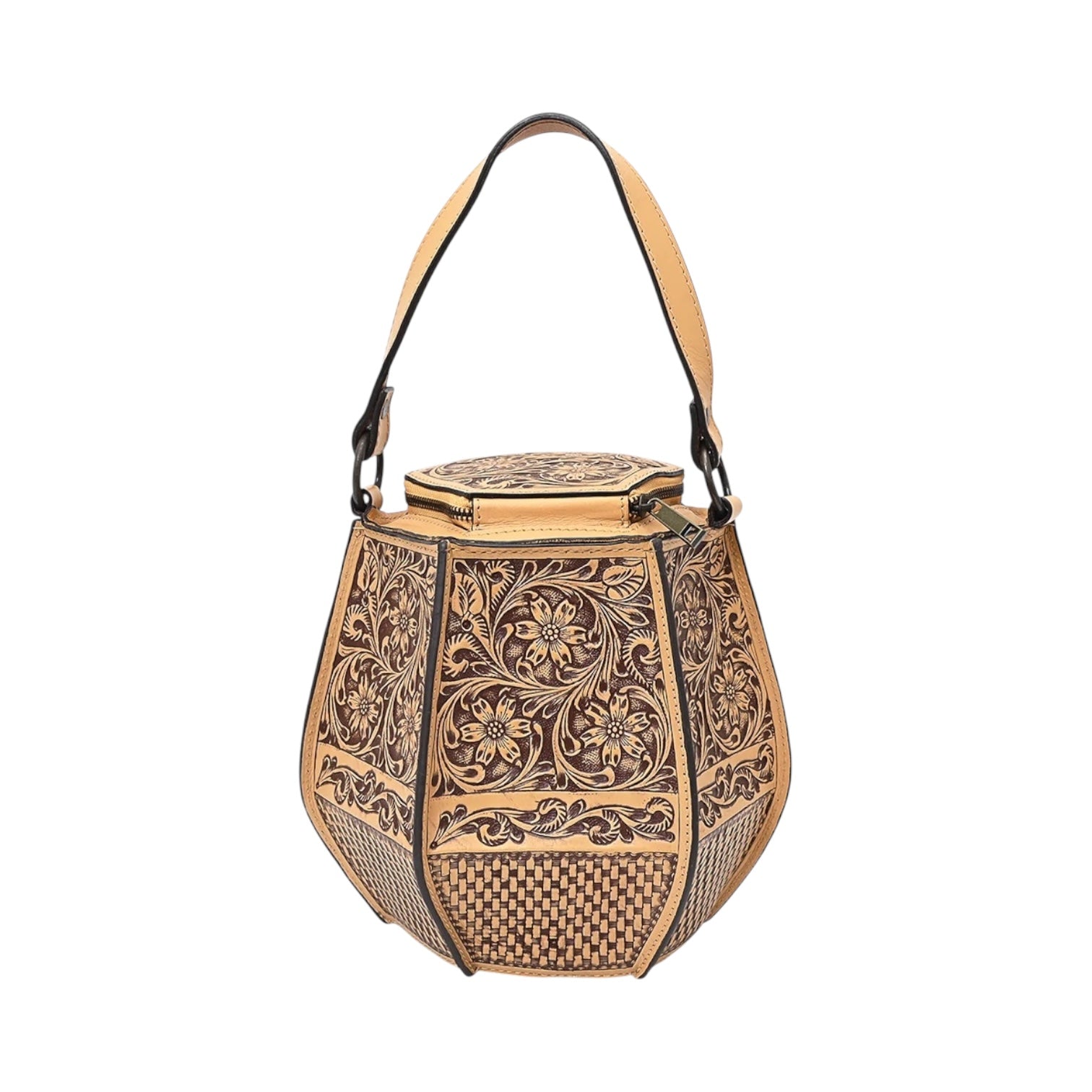 Due to the handcrafted nature of hand-tooling, each bag may vary slightly in design and shade, making your piece truly one of a kind.